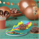 Super groovy pote luck janta party ou outras placas de papel para eventos de comida trazendo-a-dish apresentando texto ousado de "festa da sorte do pote" e personalizado com sua escolha de esquema de cores, e texto no topo e no fim.