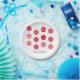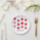Um prato de papel com bolas de Natal vermelhas e brancas e um texto "Feliz Natal". Personalize a placa de papel com seu próprio texto, cor de plano de fundo, entre outras opções.