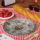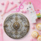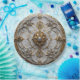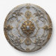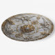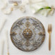 A silver and gold design resembling an opulent ceiling medallion covers this elegant plate.