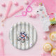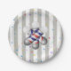Prato De Papel Paper Plates, Gray & White Stripe Barber Pole
