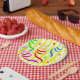 Prato De Papel Paper Plates, Yellow & White Stripe Confetti