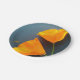 Flores alaranjado-coloridas frescas com um bocado do pólen derramado em um fundo azul