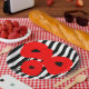 PAPEL CHIQUE PLATE_MODERN PAPOILAS VERMELHAS E PRETAS DE 12 EM LISTRAS PRETO E BRANCO. VEJA A COLEÇÃO PARA COPOS DE PAPEL E GUARDANAPO DE COORDENAÇÃO.