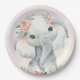 Prato de papel para chá de bebê de elefante menina