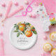 Este prato de papel temático de citrinos apresenta gráficos de laranja em aquarela e uma fonte moderna. É perfeito para um chá de noiva temático "main squeeze" e você pode combiná-lo com qualquer item da coleção BRINLEY para um visual coeso.