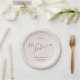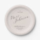 Eleve a decoração da sua mesa de chá de noiva com este prato de papel elegante e funcional, projetado para a noiva moderna. Com letras minimalistas, tons neutros suaves e a frase “A Futura Sra.”, este prato adiciona o toque final perfeito à sua celebração. Personalizado com o nome da noiva e a data do chá, é ideal para brunchs, festas no jardim ou eventos internos elegantes.