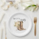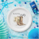 Celebre a noiva com este charmoso prato de papel para chá de panela de noiva Boots & Bubbly, onde o rústico encontra a elegância. Com um par de botas de cowboy em aquarela e uma taça de champanhe florescendo com flores cremosas, este design simples, porém sofisticado, define o tom para uma celebração elegante. Perfeito para chás de panela country-chic ou temáticos do oeste com um toque borbulhante!