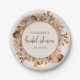 Este prato de papel para chás de panela elegante apresenta uma bela moldura de folhas de laranja queimada e terracota pintadas à mão em aquarela boho, dálias creme e bege, e belas rosas cor de ferrugem em um fundo bege. Encontre itens correspondentes na Coleção de Chás de Panela Romance de Outono.