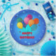 Parabéns! Design de celebração festiva com balões e céu estrelado azul. "Parabéns" é um modelo, o que significa que você pode deixar como está ou inserir sua própria mensagem.