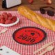 Decorre o seu formando com esta cor escolar Parabéns Classe 2024 Red Black Plates. Personalize com seu ano de formando. Apresenta cores vermelhas e pretas da escola e fonte clássica. Parabéns! é arquitetado sobre um boné de formando e a frase Classe de 2024.