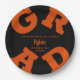 Prato De Papel Parabéns Laranja no Graduação Preta