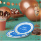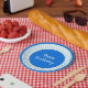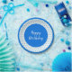 Design poka-dot azul onde o sotaque do quadro e o fundo branco podem ser alternados para qualquer cor, e o texto pode ser trocado para se adequar a qualquer ocasião.