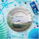Esta design apresenta as palavras "Parabéns na sua aposentadoria" com duas canoas na margem do rio prontas para a próxima aventura.
