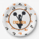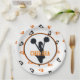 Características de design um fundo branco com teste padrão alaranjado e preto do megafone. É no centro um círculo branco com guarnição alaranjada e preta. Dentro do círculo é uma silhueta preta de um cheerleader que salta no ar com poms outstretched do pom da terra arrendada de braços. Através do centro é um lugar a personalizar com um nome na pia batismal alaranjada do estilo do jérsei do divertimento. Estes são perfeitos para suas festas de aniversário temáticos cheerleading ou para seu fim do partido e dos banquetes do elogio do ano.