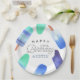 Projetadas para combinar os nossos convites de festas de aniversários de picolé-d'água, estas lindas placas de papel personalizadas apresentam uma borda de picolés de cor-de-água em verde e azul. "Happy Birthday [nome]" aparece no centro em caracteres brancos.