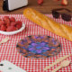 Prato De Papel Partido Brilhante do Abstrato do Anel Laranja Roxo