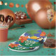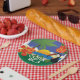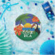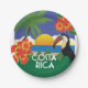 A ilustração da Costa Rica foi modelada a partir das posters no estilo da viagens vintage do passado. A imagem tropical de cor brilhante inclui um pôr do sol sobre o oceano, uma palmeira, flores de hibisco e um tucano.