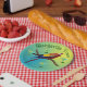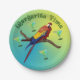 É um partido de Margarita! Estas placas de papel coloridas são parte do nosso (coleção do design de Margarita), caracterizando um Macaw com as cores vívidas, capturadas em uma floresta tropical em algum lugar. Pintura perto: Lisa Anne Ashley. Diversos vidros de Margarita com as bordas & o limão de sal com gelo. É a qualquer momento a hora para uma Margarita!
