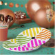 Decorar uma festa de aniversário ou um piquenique de verão com estas placas de papel divertidas com listras geométricas coloridas. Esta design é minimalista e moderna, por isso misturar-se-á facilmente com uma variedade de temas e apelará a pessoas de todas as idades.
