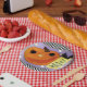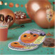 As placas bonitos do partido do Dia das Bruxas que caracterizam uma jaque-o-lanterna artística e "pôr sobre uma cara feliz!" mensagem. Engrenagem de harmonização do partido disponível.