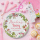 Linda tipografia aquarela cercada por morangos e folhagem com aquarelas - personalize com seu nome e data de aniversário.