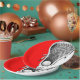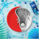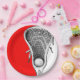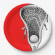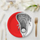 Placas legal do partido Lacrosse, com palito criativo de lax e arte de bola em fundo vermelho para o evento de lacrosse ou de equipe.