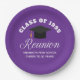 Uma placa de papel da festa de reunião de classe personalizada em roxo e branco para um segundo grau, faculdade ou universidade. Personalize com seu nome de escola e sua classe de graduação sob a elegante caligrafia para a decoração personalizada de celebrações de alunos excelentes.
