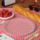 Prato De Papel Partido Simples de Padrões de Gingham no País Verm