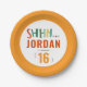 "Shh!" O Colorir Birthday Paper Plates apresenta um design lúdico com um guião pintado vibrante, ao estilo aquarela, sobre um fundo branco, emoldurado por uma borda laranja ousada. Cada letra tem uma cor única, com balas vivas a acrescentar um toque divertido. Perfeito para festas surpresa para adolescentes, adultos ou crianças, estas placas adicionam uma explosão de cor a qualquer celebração. Você pode até personalizá-los com o nome e a idade da pessoa de aniversário para tornar o prato especial! Eles trazem um toque artístico e personalizado a qualquer evento temático surpresa.