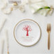 Lindo pratos de natal vermelho e dourado. Árvore gráfica simples, mas moderna, e design de pássaros dourados. Ideal para o inverno vermelho em branco e ouro ou para o evento temático de Natal, bufê ou banquete. Personalize com seu próprio evento e data. © Art e design por Sarah Trett para www.mylittleeden.com