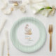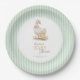 These charming baby shower napkins feature a delicate vintage watercolor illustration of Mother Goose and Gosling, creating a warm and touching story of love and care. The delicate image is framed in an elegant oval border and set against a classic pastel green striped background, inspired by timeless nursery designs and fairy tales.