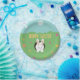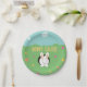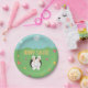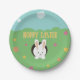 Placa de papel divertida com um coelho branco engraçado que pop do buraco do coelho com a palavra trocadilho Páscoa Hoppy