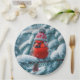 Prato De Papel Pássaro Cardinho Vermelho Vestindo Chapéu de inver