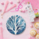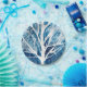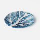 Pintor azul e aquarela de inverno de uma árvore branca com fundo de neve. Arte original com tema de Natal. Natal azul e branco.