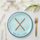 Escos cruzados de madeira e bastões de esqui numa imagem de fundo de neve. Adicione seu próprio texto.