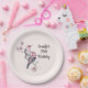 Prato De Papel Pássaros rosa e pretos em uma ramificação de árvor