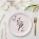 Prato De Papel Pássaros rosa e pretos em uma ramificação de árvor