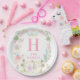 This Christmas paper plate design features a nativity image of baby Jesus sleeping in a manger with Mary and Joseph in the center surrounded by a the wise men and two angels. In the center you can add your initial and a name.