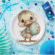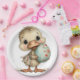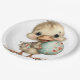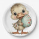 Um lindo patinho segurando um prato de papel de ovo de Páscoa