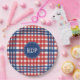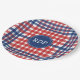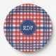 Prato De Papel Patriótico Vermelho Branco e Xadrez Azul Personali
