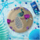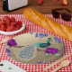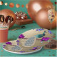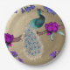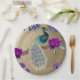Um pavão colorido é empoleirado num galho adornado com flores vibrantes. O fundo apresenta um tom dourado com detalhes texturizados, melhorando a elegância geral da cena.