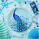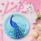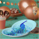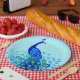 Prato De Papel Pavão em Turquesa e Azul Cobalto
