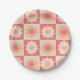 Prato De Papel Peach Fuzz Retro Flowers verificado Padrão