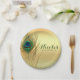 Prato De Papel Peacock Feather Dourada Exótica Boho Chic Party