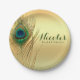 Peacock Feather Exotic Boho Chic Party Plates. Faça o plano de fundo qualquer cor. Itens correspondentes disponíveis. Personalizar com qualquer texto.