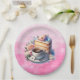 Prato De Papel Pedaço de bolo, taça de café e flores