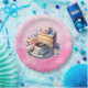 Bonito rosas e flores cor-de-rosa e azuis num pedaço de bolo de aniversário e uma xícara de café quente, aquarela, arte ai.