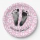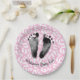 Prato De Papel Pegada de Menina em Rosa e Branco