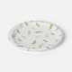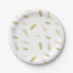 Padrão elegante apresenta penas douradas flutuantes em fundo branco