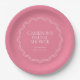 Perfeito para chá de noiva de jardim na primavera ou verão, este design elegante apresenta uma borda de concha ondulada em um fundo rosa brilhante. Personalize esses pratos de chá de noiva com o nome do seu evento, a data e o ano.